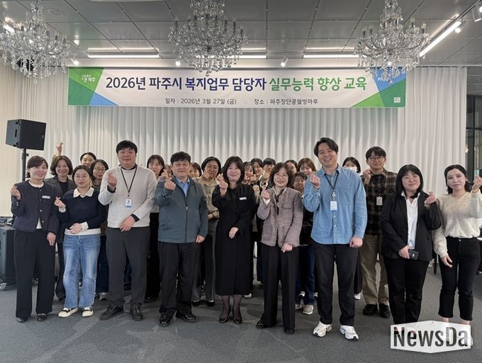 뉴스다 최광묵 기자 | 파주시는 지난 27일 파주장단콩웰빙마루 교육장에서 복지업무 담당 공무원 30명을 대상으로 실무역량 강화 및 치유 교육을 실시했다.