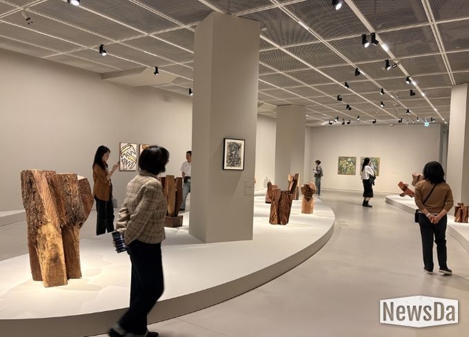 전시는 한국 모더니즘 조각을 대표하는 김윤신 작가의 예술 세계를 집중적으로 조명하는 회고전으로 구성됐다. 김윤신은 통나무 조각을 통해 자연의 생명력과 추상적 조형성을 탐구해 온 작가로, 이번 회고전은 ‘합이합일 분이분일’이라는 작업 이념 아래 회화, 판화, 조각을 아우르는 약 70년의 예술 세계를 조망하는 자리로 구성됐다.