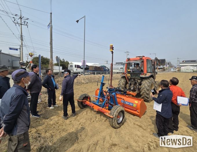 지난 27일 서탄면 수월암리에서 지원받은 레이저 균평기를 활용한 논 균평작업 시연회를 개최함으로써 서탄면 농촌지도자회 회원들이 참석한 가운데 논농사에서 중요한 물관리를 위한 땅의 균평 작업 중요성을 학습하고, 벼 이앙 후 초기 생육과 잡초 관리에 쉽도록 균평기 활용법을 교육받았다.