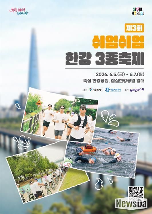 뉴스다 최광묵 기자 | 서울시는 6월 5일부터 6월 7일까지 3일간 뚝섬한강공원 일대에서 열리는 ‘제3회 쉬엄쉬엄 한강 3종 축제’ 경기 참가자 3만 명에 대한 본접수를 3월 31일 오후 2시부터 시작한다.