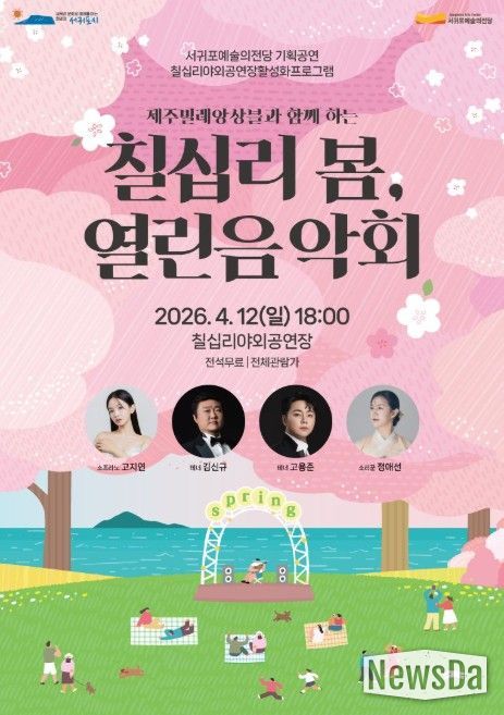 뉴스다 최광묵 기자 | 서귀포예술의전당은 칠십리야외공연장 활성화 프로그램의 일환으로, 4월 12일 오후 6시 칠십리야외공연장에서 제주빌레앙상블과 함께하는 ‘칠십리 봄, 열린음악회’를 개최한다.