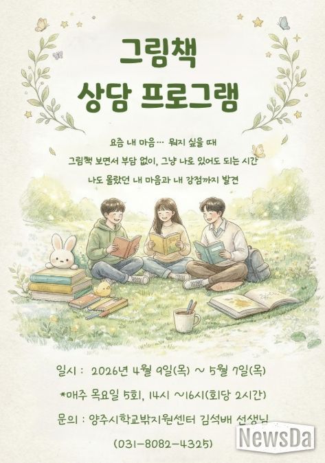 뉴스다 최광묵 기자 | 학교 밖 청소년들의 마음을 따뜻하게 돌보고 자기 이해와 강점 발견을 돕는 그림책 기반 집단 상담 프로그램이 눈길을 끌고 있다.