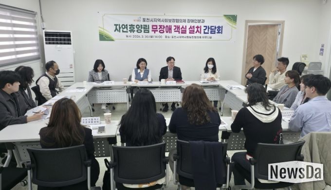 뉴스다 최광묵 기자 | 포천시 지역사회보장협의체 장애인분과는 지난 3월 30일 장애인과 고령자 등 교통약자의 이용 편의 증진을 위해 ‘자연휴양림 무장애 객실 설치 간담회’를 개최했다.