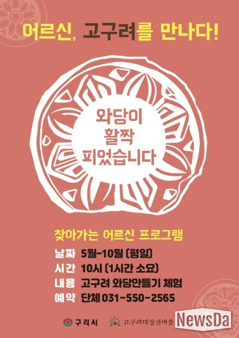 구리시 관계자는 “이번 프로그램을 통해 어르신들이 고구려 문화를 직접 체험하며 활력 있는 시간을 보내시길 바란다”라며 “세대 간 문화 향유 격차를 해소하고 우리 역사에 대한 자긍심을 높이는 계기가 되길 기대한다”라고 밝혔다.