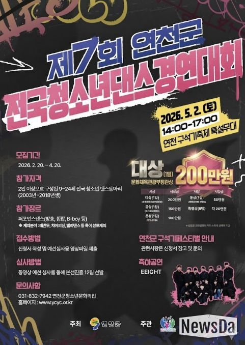 뉴스다 최광묵 기자 | (재)연천군청소년육성재단(청소년문화의집)은 지난 26일, 2026년 연천 구석기 축제와 연계하는 '제7회 연천군 전국 청소년댄스 경연대회'에 문화체육관광부 장관상과 경기도지사상을 확보하며 전국 최고의 청소년댄스 무대로 도약한다고 밝혔다.