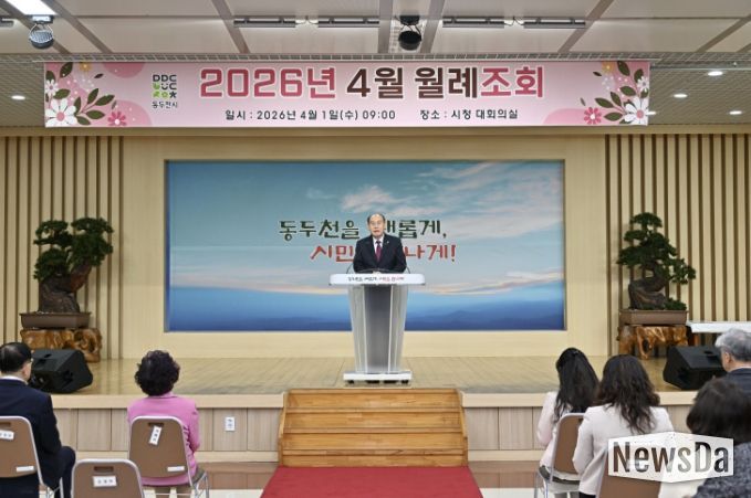 뉴스다 최광묵 기자 | 동두천시는 4월 1일 시청 대회의실에서 4월 명예시장으로 위촉된 조황래 동두천중앙성모병원 원장과 전 직원이 참석한 가운데 월례조회를 개최했다.