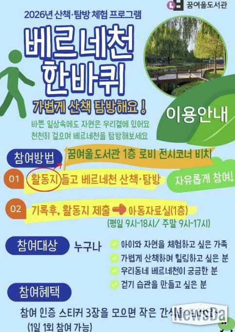 5월에는 북부도서관이 ‘백만송이 장미공원’을 주제로 사진전과 장미공원 둘레길 걷기 등 봄꽃 체험 프로그램을 운영하며, 지역 명소를 활용한 체험을 통해 시민 참여를 확대할 예정이다.