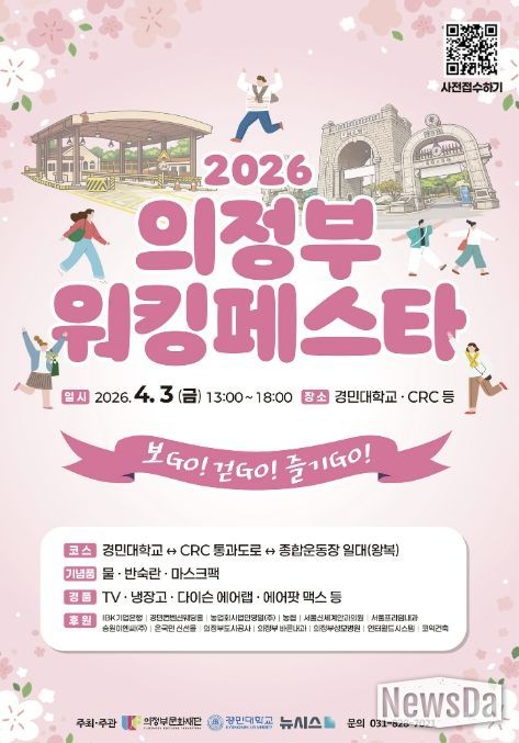 뉴스다 최광묵 기자 | 의정부문화재단은 오는 4.3. 오후 1시부터 경민대학교에서 미군반환공여지 캠프레드클라우드와 녹양동 종합운동장을 돌아오는 약 5km 거리의 걷기행사인 '2026 의정부 워킹페스타' 를 개최한다고 밝혔다.