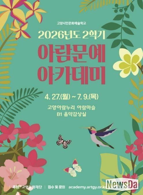 뉴스다 최광묵 기자 | 고양문화재단은 오는 27일부터 7월 9일까지 '2026년도 2학기 아람문예아카데미' 프로그램을 진행한다.