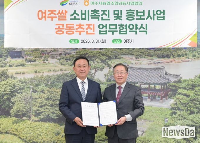 뉴스다 최광묵 기자 | 여주시는 2026년 3월 31일 여주시청 시장실에서 ‘여주쌀 소비 촉진 및 홍보사업 공동추진 업무협약식’을 개최했다. 이번 협약은 여주시와 여주시농협조합공동사업법인(대표 전규제)이 협력하여 여주쌀의 소비 확대와 브랜드 가치 제고를 위해 추진됐다.