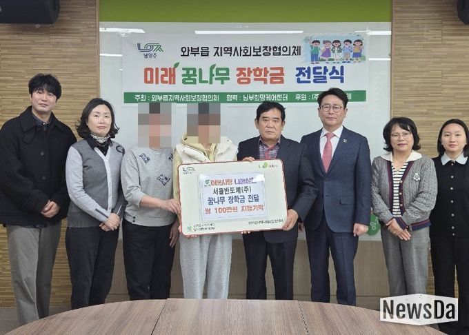 이날 전달식에는 와부읍장을 포함한 남부희망케어센터 관계자, 지역사회보장협의체 위원장 및 장학금 대상 아동 가구가 참석했다. 장학금은 지역 아동 10명에게 매월 10만 원씩 지원하는 방식으로 전달된다.
