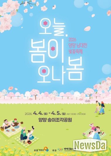 뉴스다 최광묵 기자 | 양양군이 오는 4월 4일부터 5일까지 이틀간 열리는 ‘2026 양양 남대천 벚꽃축제’를 앞두고, 관람객 안전 확보와 교통 대책 마련을 위한 최종 점검에 나섰다.