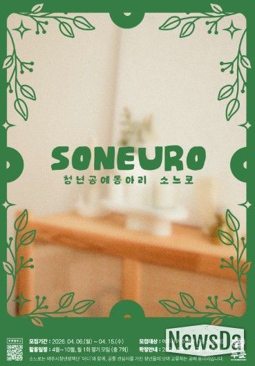 뉴스다 최광묵 기자 | 여주시청년활동지원센터 푸릇은 오는 4월 청년공예동아리 'soneuro(소느로)' 참여자를 모집한다고 밝혔다.