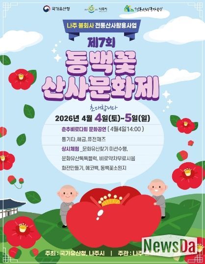 뉴스다 최광묵 기자 | 전남 나주시가 천년고찰 불회사에서 동백꽃과 전통문화, 체험 프로그램을 결합한 산사문화제를 개최해 봄철 힐링 관광과 문화유산 가치 확산에 나선다.