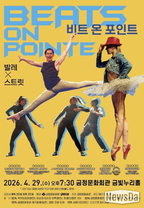 뉴스다 최광묵 기자 | 부산 금정구 금정문화회관은 오는 4월 29일 오후 7시 30분, 금정문화회관 금빛누리홀에서 클래식 발레와 스트릿 댄스를 결합한 융복합 퍼포먼스 ‘비트 온 포인트(BEATS on POINTE)’를 개최한다고 밝혔다.