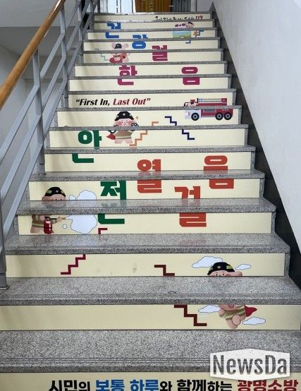 뉴스다 최광묵 기자 | 광명소방서는 직원들의 건강 증진과 활기찬 근무환경 조성을 위해 본서 주계단에 ‘안전건강계단’을 설치했다고 밝혔다.