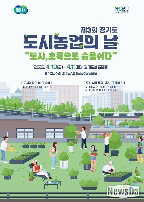 뉴스다 최광묵 기자 | 도시농업 관련 체험행사와 직거래장터, 공연 등을 즐길 수 있는 ‘제3회 경기도 도시농업의 날 기념행사’가 오는 10일부터 11일까지 양일간 경기도청 도담뜰에서 열린다.