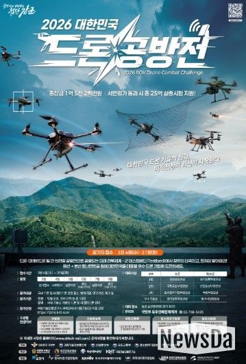 뉴스다 최광묵 기자 | 포천시는 국방 무인체계(드론) 발전과 관련 산업계의 시너지 효과를 높이기 위해 국내 최초로 ‘2026 대한민국 드론 공방전(2026 KDCC)’을 오는 9월 개최한다.