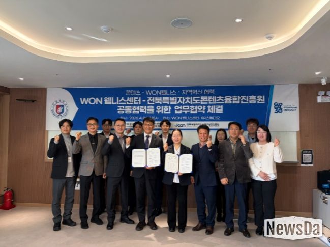 뉴스다 최광묵 기자 | 전북특별자치도 콘텐츠융합진흥원과 원광대학교 WON 웰니스센터(센터장 최미숙)은 콘텐츠와 웰니스 분야 연계를 위한 협력 방안을 마련하고, 상호 협력 기반 구축을 위한 논의를 진행하고 있다고 밝혔다.