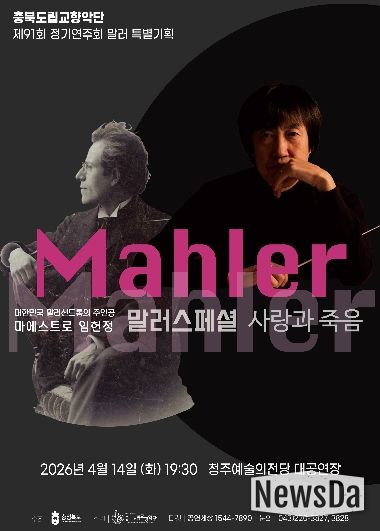 뉴스다 최광묵 기자 | 충북도립교향악단이 오는 4월 14일(화) 오후 7시 30분, 청주예술의전당 대공연장에서 제91회 정기연주회 말러 특별기획 ‘말러 스페셜 〈사랑과 죽음〉’을 개최한다.
