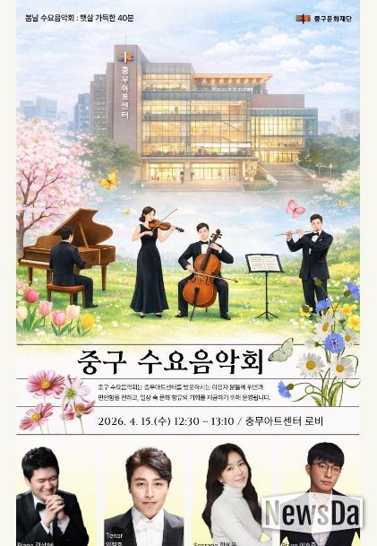 중구문화재단은 전 세대가 일상 속에서 자연스럽게 음악을 접할 수 있도록 ‘음악이 흐르는 로비’를 지속적으로 조성해 나갈 계획이다. 공연은 별도의 사전 신청 없이 자유롭게 관람할 수 있다. 또한 수요음악회의 취지에 공감하고 함께할 연주 봉사자를 상시 모집 중이며, 신청은 중구문화재단 홈페이지(caci.or.kr)를 통해 가능하다.