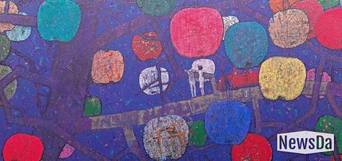 작가는 사과를 생명과 우주가 응축된 존재로 바라보며, 둥근 하늘과 둥근 땅 사이에 머무는 상징적 형상으로 확장한다.