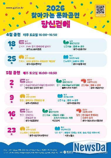 뉴스다 최광묵 기자 | 광주광역시는 시민들이 일상 속에서 문화예술을 즐길 수 있도록 돕는 ‘찾아가는 문화공연-당신곁에’를 도심 곳곳에서 개최한다.