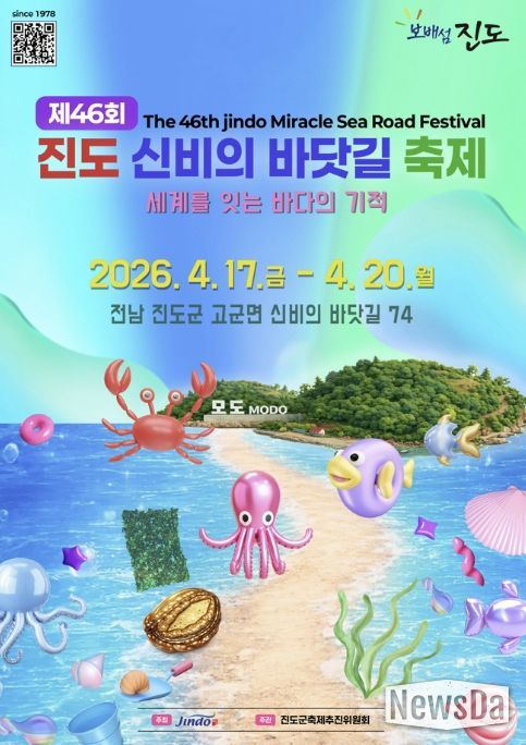 뉴스다 최광묵 기자 | 진도군은 ‘세계를 잇는 바다의 기적’을 주제로 한 '제46회 진도 신비의 바닷길 축제'를 오는 17일부터 20일까지 4일간, 고군면 신비의 바닷길 일원에서 개최한다.
