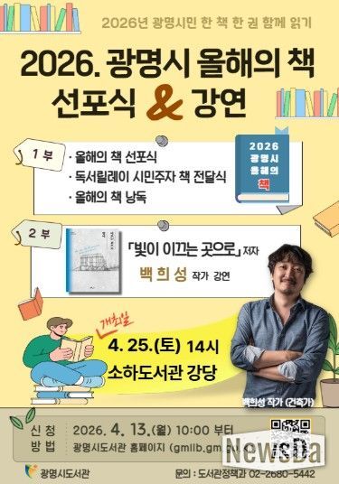 시는 오는 25일 오후 2시 소하도서관 강당에서 ‘2026년 광명시민 책 한 권 함께 읽기’ 올해의 책 선포식을 개최한다.