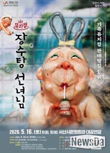 뉴스다 최광묵 기자 | 충남 서산시는 오는 5월 16일 오전 11시와 오후 3시, 서산시문화회관 대공연장에서 2026년 시리즈 특별기획 ‘토요가족극장’ [백희나 작가 연작 시리즈] 두 번째 작품으로 가족뮤지컬 ‘장수탕 선녀님’을 개최한다고 밝혔다.