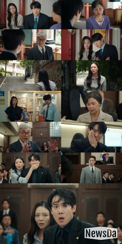 이렇게 한층 가까워진 감정으로 함께 손잡고 자료를 수집하며 열심히 재판을 준비한 신이랑과 한나현. 하지만 법정에서는 상상도 못했던 폭풍이 휘몰아쳤다. 아들 강지훈 측 변호인 양도경(김경남)은 먼저 유언장 작성 시점 조작을 주장했다. 강동식이 유언장을 만년필로 작성했는데, 잉크의 산성도를 분석해보니 2022년 이후 생산분과 일치했다. 이에 2019년 작성으로 기재된 유언장이 실제로는 중증 치매를 앓고 있던 시기에 쓰였다는 것. 문체 분석 프로그램을 통해, 유언장의 어투와 배치 등이 채정희의 글과 94% 일치한다는 결과를 내놓은 양도경은 결정적으로 려선화를 간첩으로 신고한 장본인이 다름 아닌 채정희였다는 군사 정보기관 자료까지 폭로하며 판을 뒤집었다.