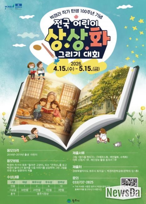 뉴스다 최광묵 기자 | 원주시는 ‘박경리 작가 탄생 100주년’을 기념해 전국 어린이를 대상으로 ‘2026년 제6회 전국 어린이 상상화 그리기 대회’를 개최한다.