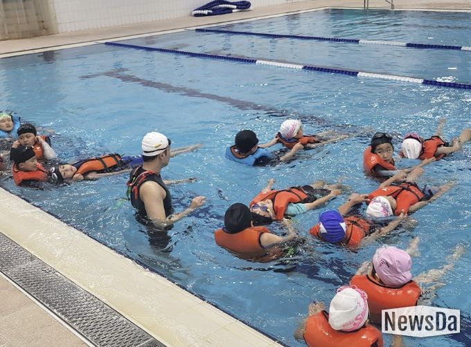 주요 교육 내용으로는 ▲수영장 안전교육 및 재난대피 훈련 ▲물 적응 및 호흡훈련 ▲생존뜨기 및 체온 유지법 ▲수중 이동 및 구조 기초활동 등이 진행되며, 실제 위기 상황에서 필요한 대응 능력을 단계적으로 익힐 수 있도록 구성했다.