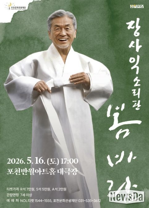 뉴스다 최광묵 기자 | 포천문화관광재단은 가정의 달을 맞아 장사익 소리판 ‘봄바람’을 오는 5월 16일(토) 오후 5시, 포천반월아트홀 대극장에서 개최한다.