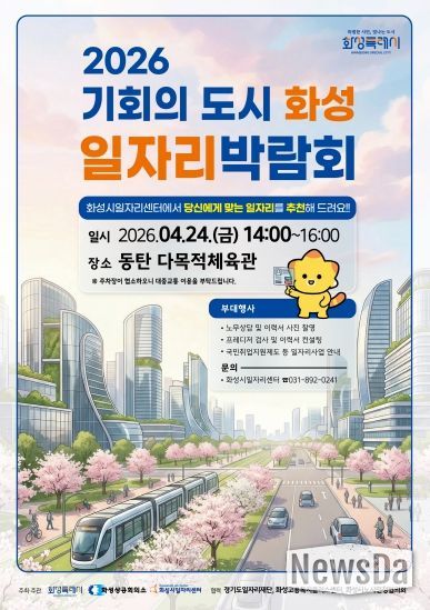 뉴스다 최광묵 기자 | 화성특례시는 오는 24일 동탄 다목적체육관에서 구인 기업의 인력난 해소와 구직자의 성공적인 취업을 지원하기 위한 ‘2026년 화성시 일자리박람회’를 개최한다. 이번 박람회는 화성특례시 출범 이후 강화된 지역 경제의 역동성을 바탕으로, 기업과 구직자 간 실질적인 매칭을 통해 체감도 높은 고용 성과를 창출하기 위해 마련됐다.