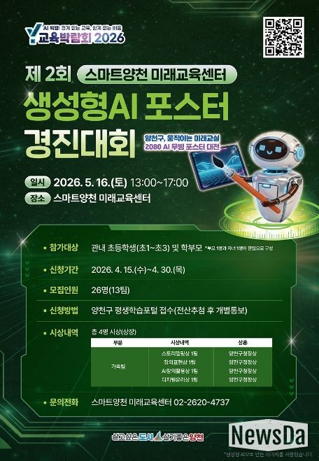 이기재 양천구청장은 “이번 경진대회는 ‘Y교육박람회 2026’의 열기를 권역별 미래교육센터로 확산시켜 모든 세대가 미래 기술을 경험할 수 있도록 하기 위해 마련됐다”며, “AI부터 코딩, 드론까지 다양한 미래형 콘텐츠를 통해 4차 산업혁명 시대에 필요한 창의적 문제해결 능력과 융합 역량을 키울 수 있기를 기대한다”고 말했다.