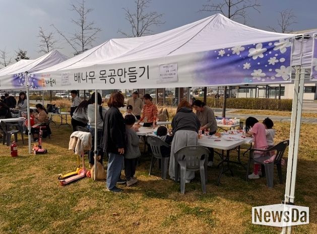 뉴스다 최광묵 기자 | 평택시는 지난 11일과 12일 이틀간 함박산중앙공원 배꽃 나들이 행사에서 목재 체험 부스를 운영했다.