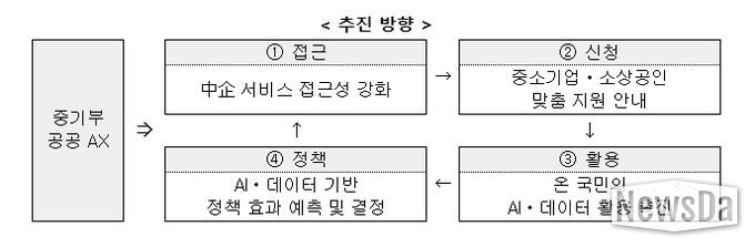 이에 중기부는 공공 AX 전환을 통해, 서비스 접근부터, 사업 신청, 인공지능(이하 AI)‧데이터 활용, 내부 정책 집행까지 전 과정을 통합 지원하는 체계를 구축할 계획이다.