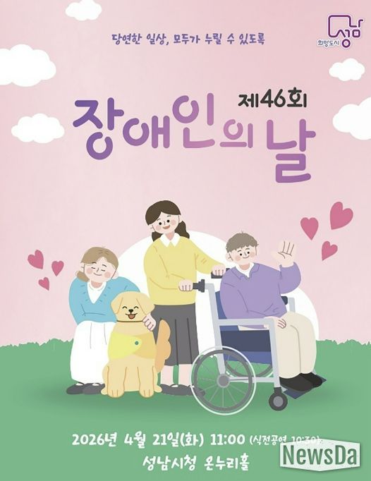 뉴스다 최광묵 기자 | 성남시는 ‘제46회 장애인의 날(4.20)’을 맞아 오는 4월 21일 오전 11시 시청 1층 온누리에서 기념식을 연다.