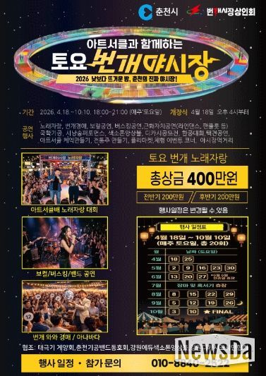 시 관계자는 “번개야시장은 시민 일상 속 야간 여가 공간이자 지역 상권을 살리는 실질적인 소비 거점”이라며 “앞으로도 다양한 콘텐츠를 더해 춘천을 대표하는 야간 명소로 키워나가겠다”고 말했다.