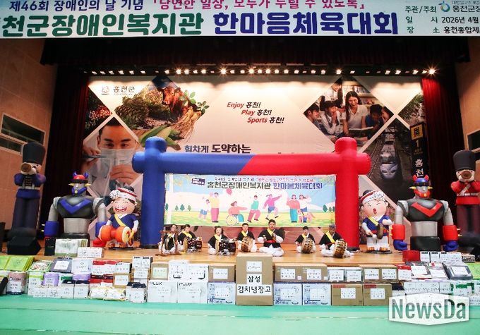뉴스다 최광묵 기자 | 홍천군장애인복지관은 4월 16일 제46회 장애인 인의 날을 기념하여 홍천군종합체육관에서 장애인 한마음체육대회를 개최했다.