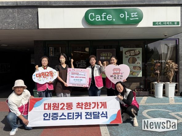 뉴스다 최광묵 기자 | 오산시 대원2동은 지난 16일 지역 내 카페 ‘아뜨’를 ‘착한날개(착한가게)’ 14호점으로 지정하고 인증스티커를 전달했다고 밝혔다.