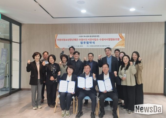 뉴스다 최광묵 기자 | 수원시 도서관사업소와 수원시청소년청년재단, 수원시서점협동조합이 지역 독서문화 활성화와 시민 독서활동 증진을 위해 협력하기로 했다.