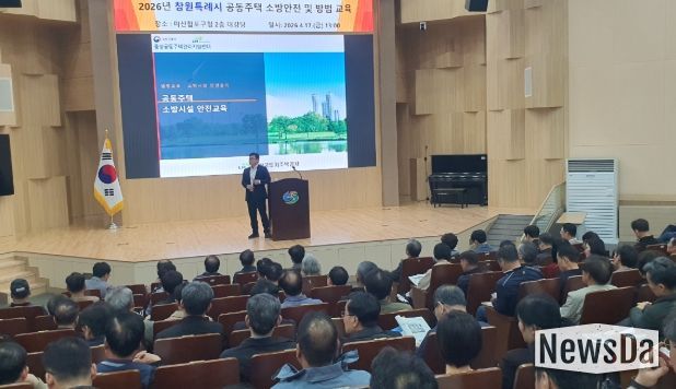 뉴스다 최광묵 기자 | 창원특례시는 공동주택의 안전한 주거환경 조성과 체계적인 시설 관리를 위해 지난 17일, 마산합포구청 대회의실에서 공동주택 관리주체를 대상으로 ‘2026년 상반기 공동주택관리 소방안전 및 방범교육’을 실시했다고 밝혔다.