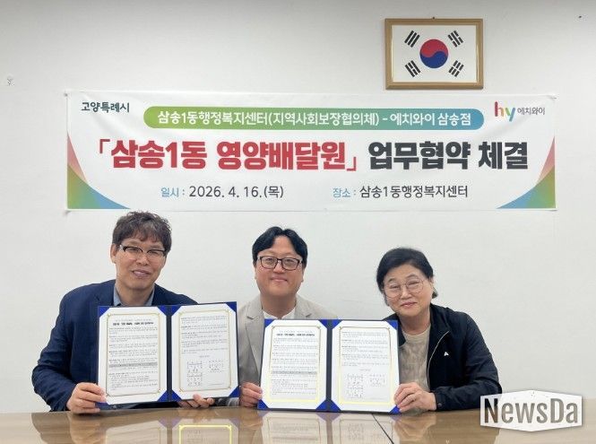 뉴스다 최광묵 기자 | 고양특례시 삼송1동은 지난 16일 취약계층의 건강과 안부를 동시에 살피는 ‘영양배달원’사업 추진을 위해 지역사회보장협의체와 ㈜에치와이 고양 삼송지점이 업무협약을 체결했다.