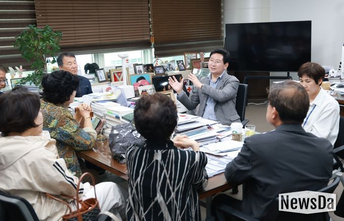 이 시장은 이날 시장실을 찾은 성동마을LG빌리지1차아파트 입주자대표회의 구자훈 회장 등 주민 9명과 대화했다.