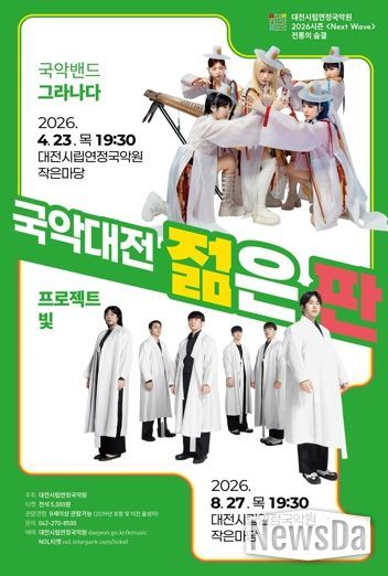 뉴스다 최광묵 기자 | 대전시립연정국악원은 지역 국악 활성화와 예술 생태계 상생을 위한 지역 국악 활력 프로젝트〈국악대전, 젊은 판〉을 4월 23일 저녁 7시 30분에 국악원 작은마당에서 선보인다.