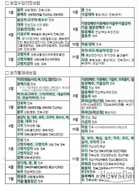 벼는 지난해 4개 시·군을 대상으로 운영했고, 올해 16개 시·군에 신규 도입하여 총 20개 시·군에서 확대 운영된다. 아울러, 봄배추·봄무는 평창 등 주산지 중심으로 시범 운영에 착수하는 한편, 봄감자·고구마·옥수수는 전국으로 확대하여 운영한다.