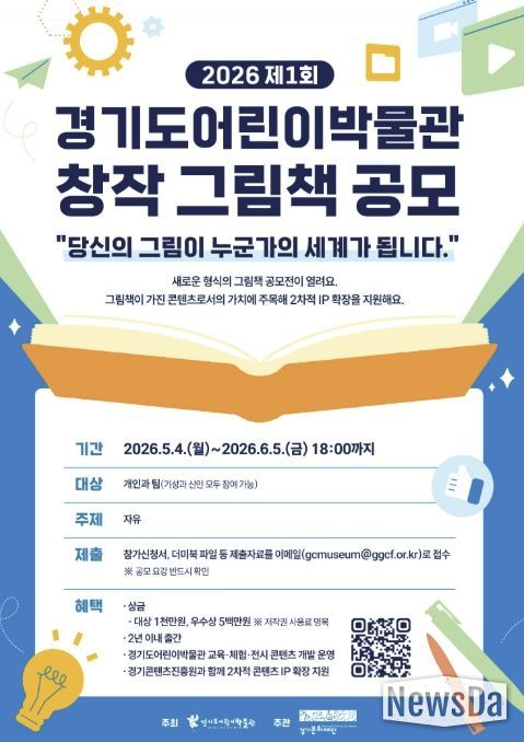 공모 접수는 오는 5월 4일부터 6월 5일까지 약 한 달간 진행되며, 자세한 공고 내용은 4월 20일부터 경기도어린이박물관 및 경기문화재단 누리집(홈페이지)을 통해 확인할 수 있다. 그림책 작가를 꿈꾸거나 새로운 도전을 원하는 창작자라면 누구나 참여할 수 있다.
