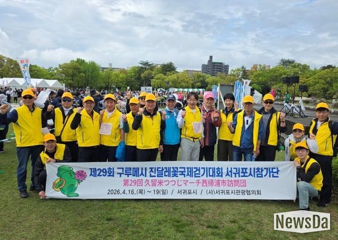 뉴스다 최광묵 기자 | 서귀포시와 (사)서귀포시관광협의회는 4월 18일부터 19일까지 일본 후쿠오카현 구루메시에서 열린 ‘제29회 일본 구루메시 진달래꽃 국제걷기대회’에 참가했다고 밝혔다.